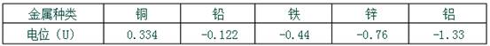 表6—5 不同金屬在電解質(zhì)中形成原電池的電極電位